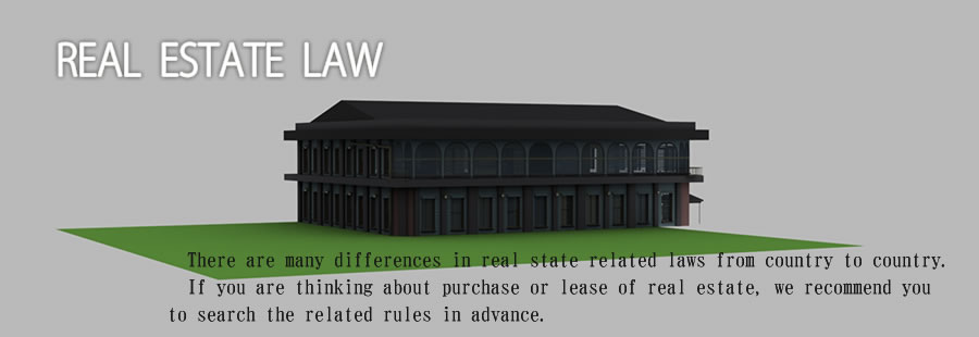 Earth& Law Firm deals with sale and purchase and mortgage of real estate, lease or rental of real estate (including deposit, assignment, sublease, terminaion, repair and maintenance), development of real estate, architecture and construction of bulding, and other real estate related matters, and also provide risk analysis, making related contracts and demand letters, negotiate, mediate, litigate or advice about related matters. We are providing services to foreign people.